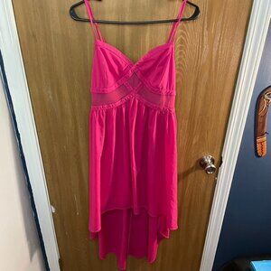 Pink High Low Dress w/ side zipper, mesh detail and spaghetti straps
