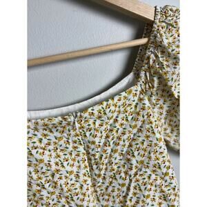 Doe & Rae Puff Sleeve Floral Mini Dress White Yellow Ditsy Print Size Medium Wm