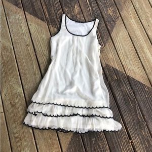 Doe & Rae Ruffle Layer Contrast Edging Tunic Dress. Sleeveless Shear off white ruffle layers with black contrast scallops. Lined. Excellent used condition. Ready for summer! Women’s size Small.
