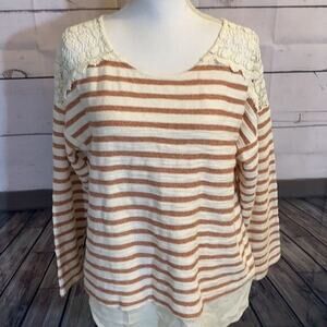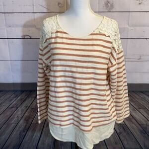 Doe Rae Shirt Womens Large Ivory Orange Striped Lace Boho Boxy Rayon Textured