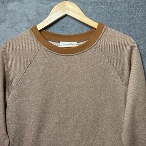 Doe & Rae Side Zipper Pullover Small Light Brown and Cream Striped Casual Loose