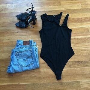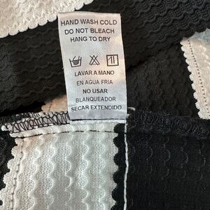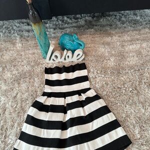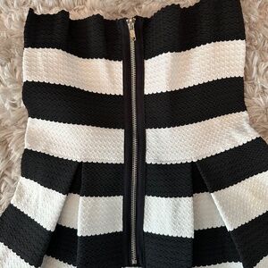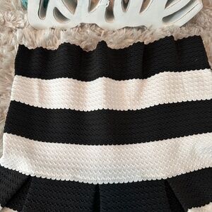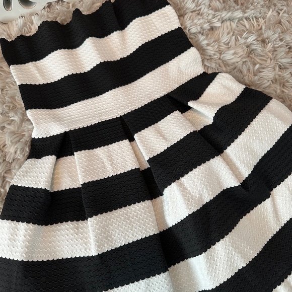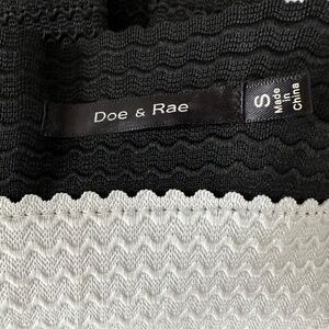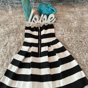 Doe & Rae size small - adorable elastic strapless black/white wide stripped dress. Fitted on top thro waist & then flares, mid thigh length in great preowned condition. So flattering on..