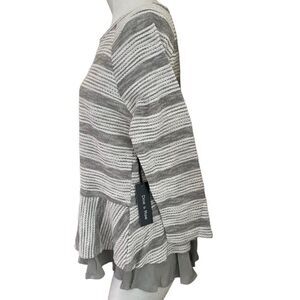 Doe & Rae Small Long Sleeve Blouse Striped Ruffled Hem Tunic Lace Gray NWT