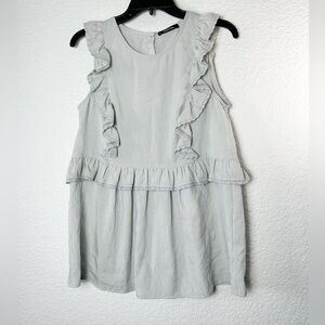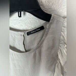 Doe & Rae Striped Ruffle Sleeveless Blouse