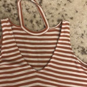 Doe & Rae orange striped knit tank top. Kimono style flowiness. Very soft and comfortable. Has separate button collar with two size options. Size medium.