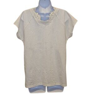 NWOT. No size tag. PTP- 19.5 inches with a little stretch as well. Cute V-neck with embroidery lace detail along neckline.