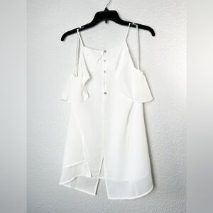 Doe & Rae White High Neck Tank Top with Ruffle
