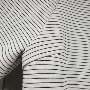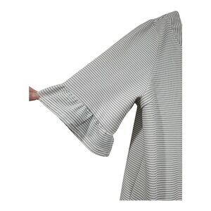 Doe & Rae Women's Short Flutter Sleeve Round Neck Striped Color Block Dress Sz L. Please note a small fabric run on the bottom back of the dress. See attached picture. All measurements are approximate.