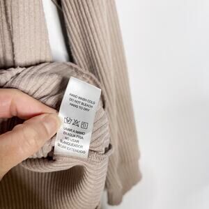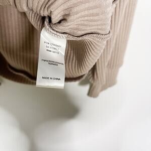 Doe & Rae Womens Small S Brown Ribbed Long Sleeve Lace Up Back Top Cozy Soft
