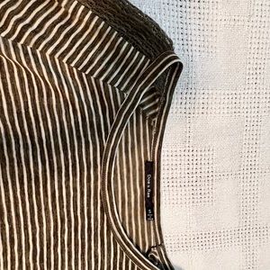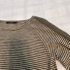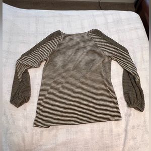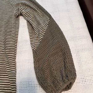Green and white strip balloon sleeve thin sweater top with crochet detail