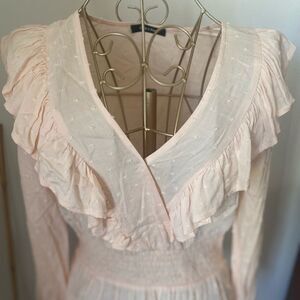 Doe & Rae peachy pink Swiss dot ruffle blouse