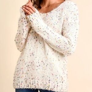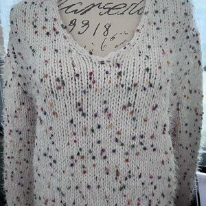 Doe & Rae v neck sweater. Confetti colors throughout. Material 100% poly.