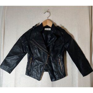 Doe a Dear Children's Size 5 Black Vegan Leather Moto Biker Style Zip Jacket