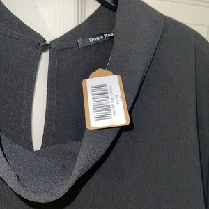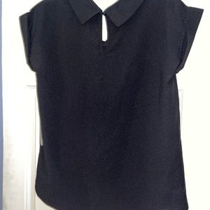Shirt sleeve dressy shirt. Brand new with tags. Has a small button at the top of the neck in the back with a small peephole as well. Color is black but my flash on my phone made it look slightly grey in color.