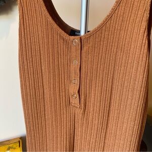 Elevate your casual wardrobe with this stylish tan ribbed tank top. Perfect for layering or wearing on its own, this top offers both comfort and versatility.