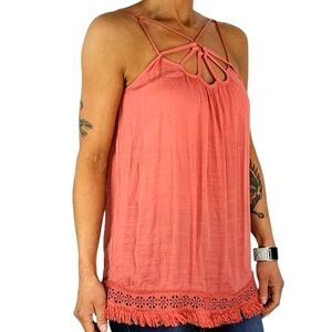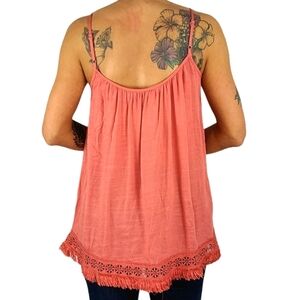 Doe&Rae Fringe Hem Sleeveless Loose Fit Tunic Size Small Pink