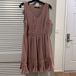 V-neck dress with charming floral hemline that's tailored through the waist and then flares in the skirt. Perfect for summer wedding, graduation or special celebration. Lined Zipper on the left side Hand wash cold
