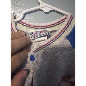 This Doe-Spun jacket is perfect for your little baseball player! With a gray color and baseball theme, it's a great addition to any little one's wardrobe. Made with fleece fabric, it's perfect for cooler temperatures in the fall and spring. The jacket is a size 5 and is suitable for both baby boys and girls.