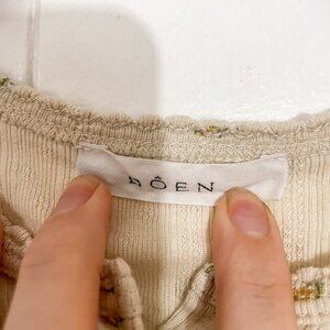 Doen Amelie Yellow Floral Pointelle Button Down Tee Top Shirt,
