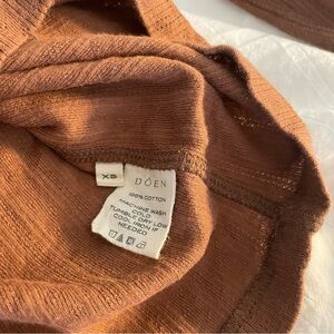 Lovely basics top from Doen. I believe this is the Annie cut in “saddle”. This is the earliest iteration so it’s thicker/not sheer like the current version.