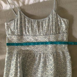 MEASUREMENTS SIZE M: BUST - 34”, WAIST - 29.5”, DRESS LENGTH - 43.5” (NECKLINE TO HEM)