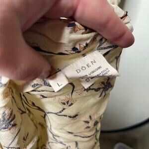 Doen Brindille cream scroll print maxi dress sz L. Gently used condition, no flaws. 2018 collection. Pull on style , deep V neck , ruffle shoulders .