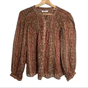 Doen Camina Top Blouse Size XS In Earth Mandevilla Vine Floral Print Paisley