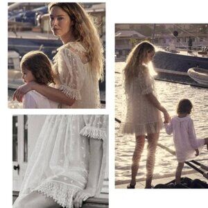 Rare Doen Clarice dress, size XL. Collared lace mini babydoll with floral embroidery detail. Beautiful vintage cream color. Single mother of pearl button on the back.