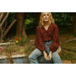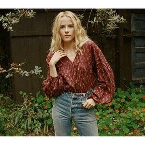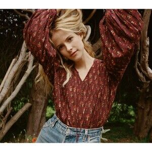 Doen Collection Petunia Happy Flower Block Print Blouse Top Peasant S New 280277