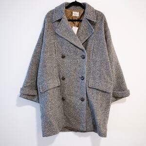 Doen Davis Coat Herringbone Gray Wool Blend Peacoat Double Breasted SZ M NWT
