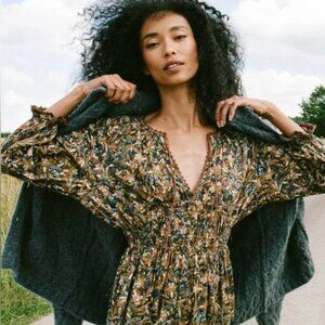 Doen Delfina Dress in Noir Narcissus Floral Size Large NWOT