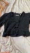 Chic black blouse with lace trim. Features elegant ruffles. Perfect for versatile styling.