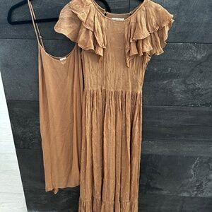Doen Flora Embroidered Ruffle Maxi Dress Adobe Size XS