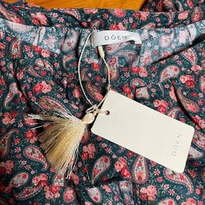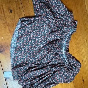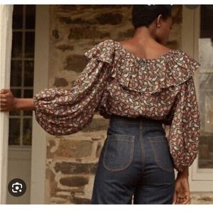 Elegant floral blouse with ruffle details. Features a multicolor pattern. Perfect for casual or dressy occasions.