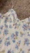 Charming Doen sundress with delicate floral pattern. Features soft blue and yellow flowers on a cream background. Perfect for a beach day.