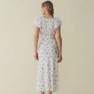 Doen Florencia Silk Ruched Short Sleeve Midi Maxi Dress Bleu Frolicking Floral