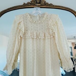 Charming girl’s ivory lace dress with delicate eyelet design. Ideal for elegant events.