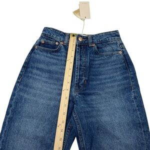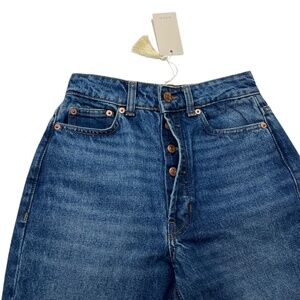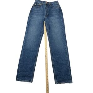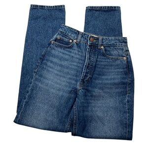 Stylish high rise jeans. Classic blue color. Perfect for casual wear.