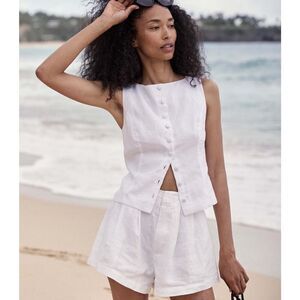 Tailored in soft midweight linen, the ‘60s-inspired Larue Linen Short features a high waist with a hidden zipper and button closure, an A-line silhouette, side pockets, and pleat detailing.