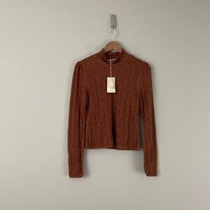 Doen Minou Turtleneck Pointelle Knit Sweater in Persimmon Size Medium