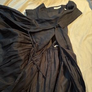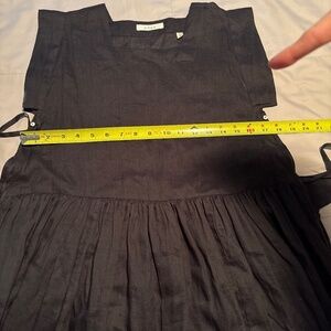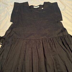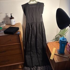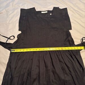 Sold-out. Timeless. One of the coolest silhouettes ever. Apron, pinafore style. Took out care tag as it was extremely annoying at my back waist and showed through but left spare button. Couple little white marks in ramie (as arrived). Some deodorant marks at pits - likely cleanable but getting posted while I can.