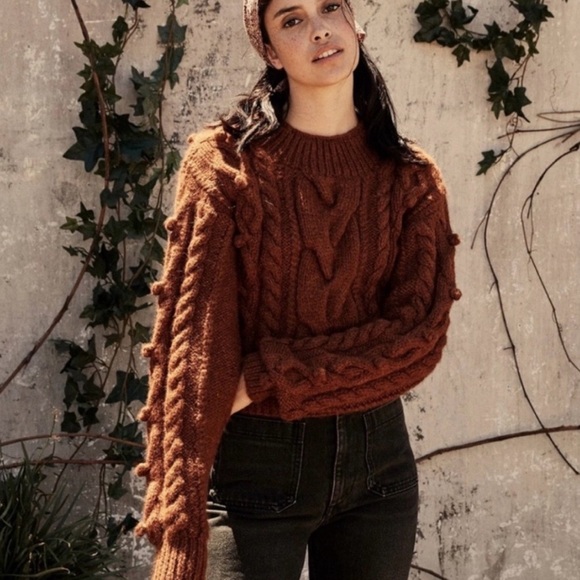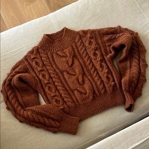 Doen Reed sweater, color is cinnamon, size Medium. Would look good on a size small too. High alpaca fabric content so it’s very heavy and warm. Beautiful sweater in perfect condition.