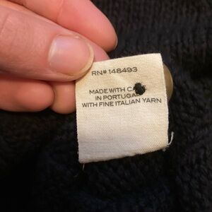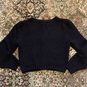 Beautifully soft cardigan with front pockets, slightly puffed sleeve at the shoulder, reinforced ribbon at button placket, and a little stretch to the knit. Minor pilling throughout, no flaws otherwise to note.