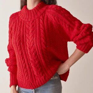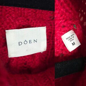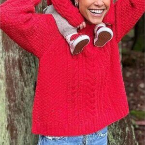 doen serena red sumac confetti yarn hand knitted cable knit sweater size m baby alpaca blend fisherman style made in peru boho chic cozy warm textured quiet luxury sustainable artisan timeless winter fall elevated knitwear soft feminine