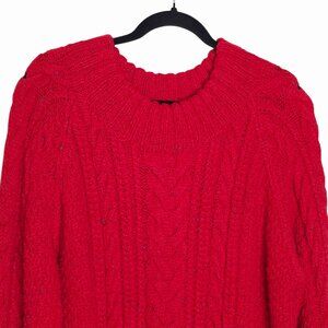 Doen Serena Red Sumac Confetti Yarn Hand Knitted Cable Knit Sweater Size M