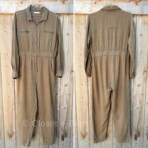 Doen Serre Jumpsuit Size Medium Moss Green Brown 100% Silk