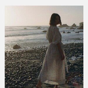 Doen Stanton. Sold out. Rare. Gorgeous. Comes w tie. The only things I’m noting are Doen tag coming up and some popped seam at pit. Great shape apart.