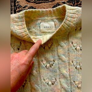Stay cozy and stylish with this elegant cable knit sweater from Doen, size Small. Perfect for any occasion, this sweater offers both comfort and fashion. Puff sleeves and beautiful confetti pattern. EUC, no flaws