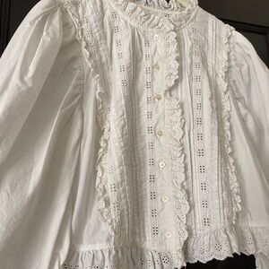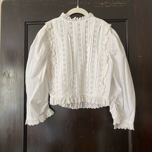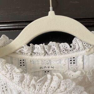 White button down blouse from Doen- marked a size small fits true to size. Buttons down the front and has a cropped fit. Only worn a handful of times.