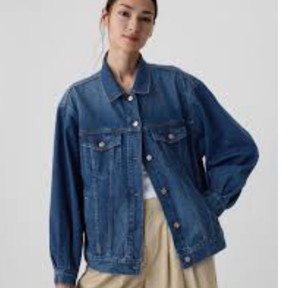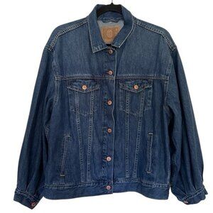 Amazing collaboration between Doen x Gap produced a capsule worthy of both… this Jean jacket captures each brands strengths. Doen design, ie slightly inverted shape, oversized sleeves with darts at the wrists (perfect over dresses!), super soft denim as only the Gap can do… this is a great find. Oversized L, as it is meant to be, get your usual size or even go up for an adorable layered slouch.